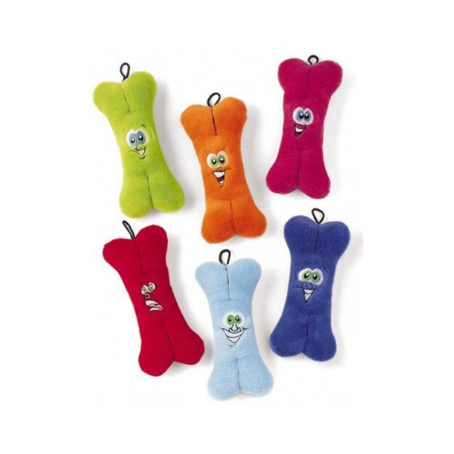 Spot Plush Embroidered Face Bones will provide fun and entertainment for your dog. He'll love the giant bone shape and built-in squeaker, and the soft plush makes it safe for tons of fetching and tossing fun!