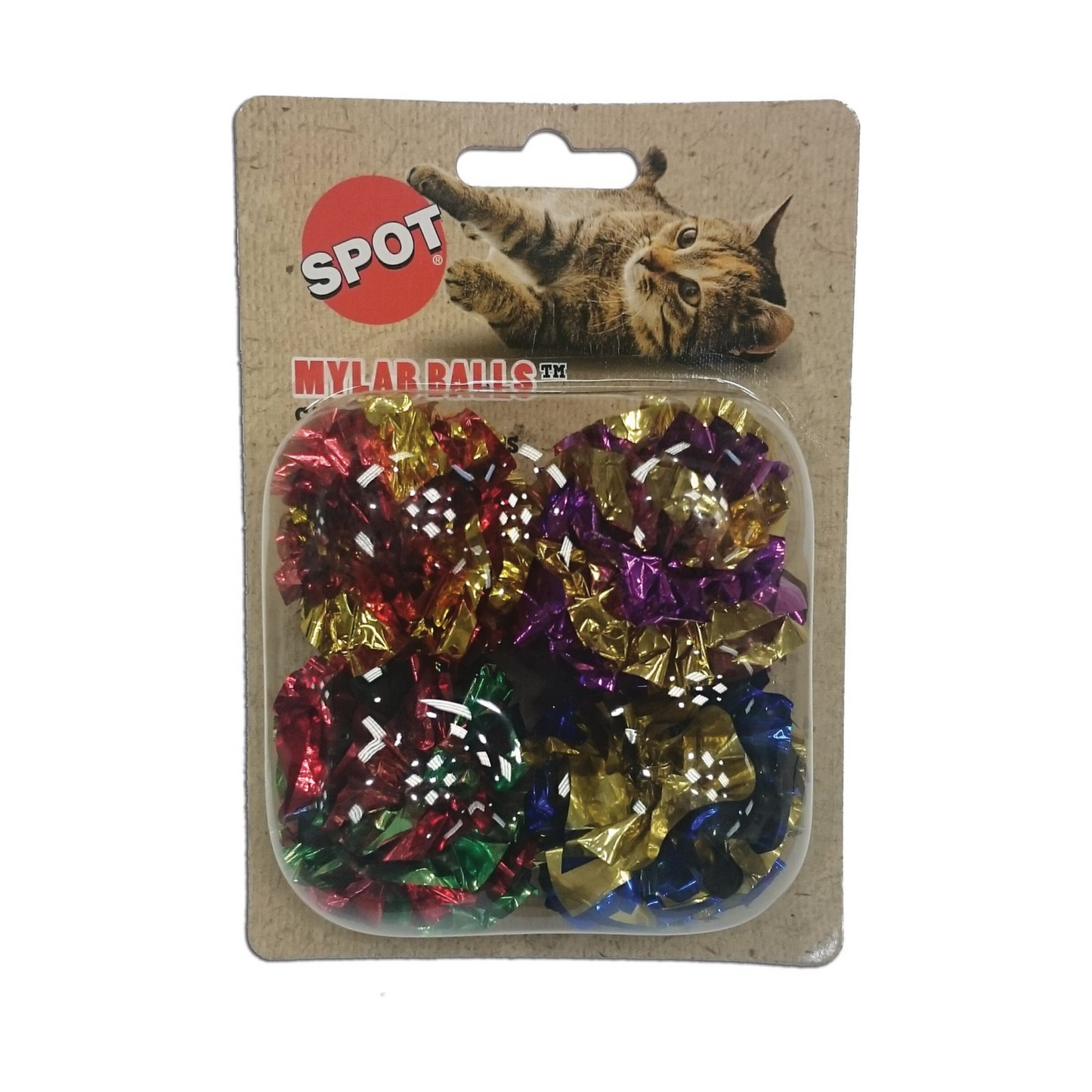 If your cat loves to rip the bows off your packages, then Spot Mylar Balls are the toys for her! Mylar is a durable material that cats go crazy for. These balls make the perfect toy to get cats up and active while indulging their natural instincts. Cats love to bat, pounce on and chase these mylar balls. Approximately 1.5" diameter toys. Made of vibrant colors and mylar that produce a crinkle noise to intrgue your kitty!