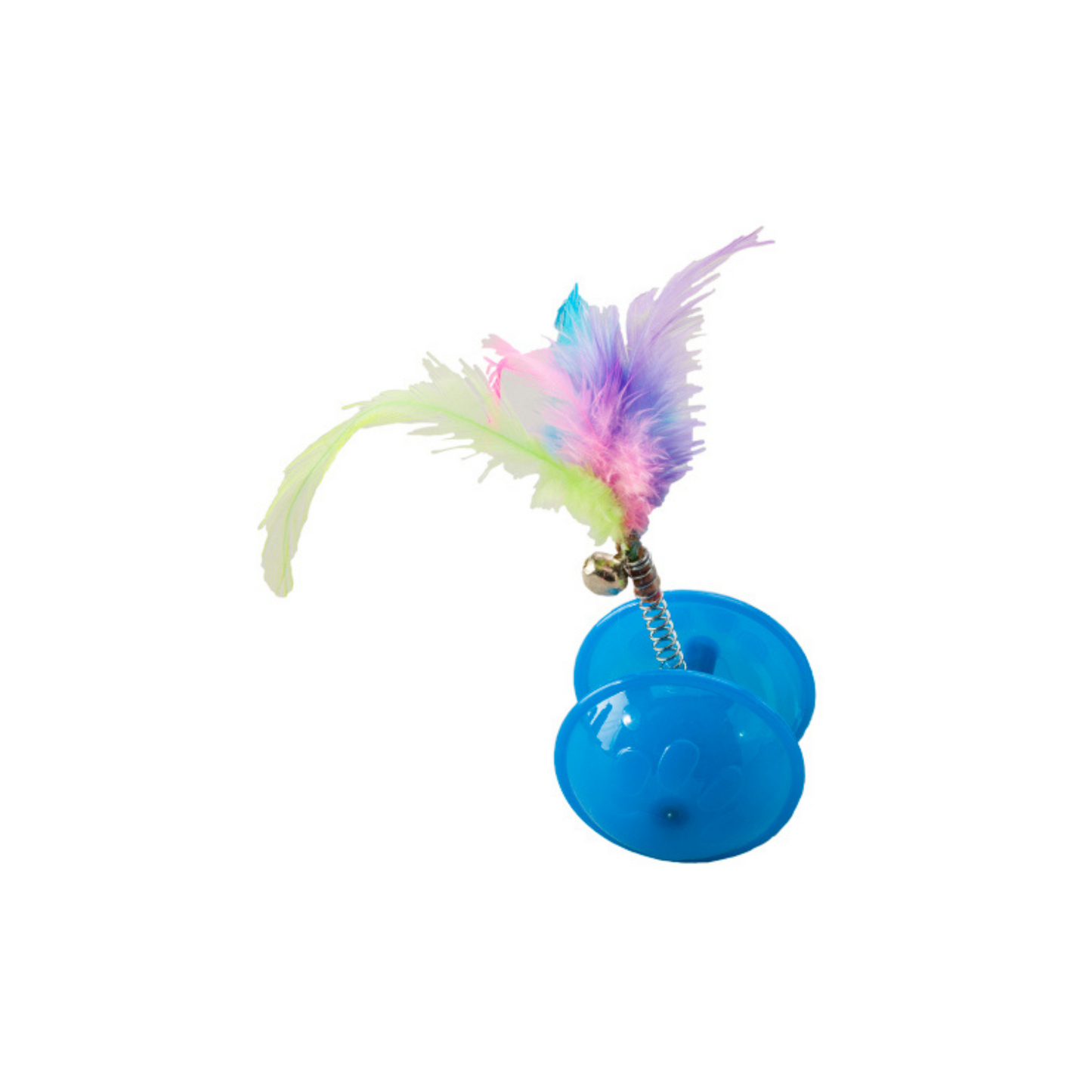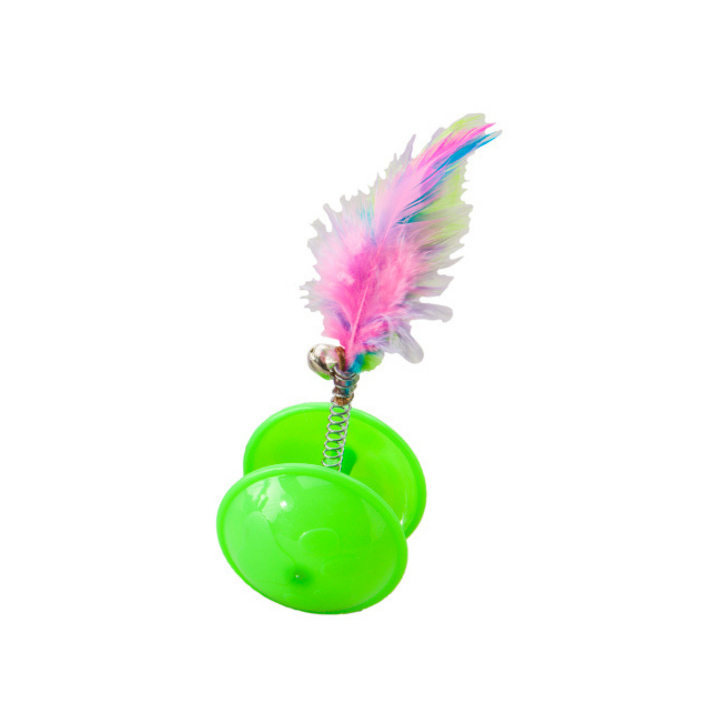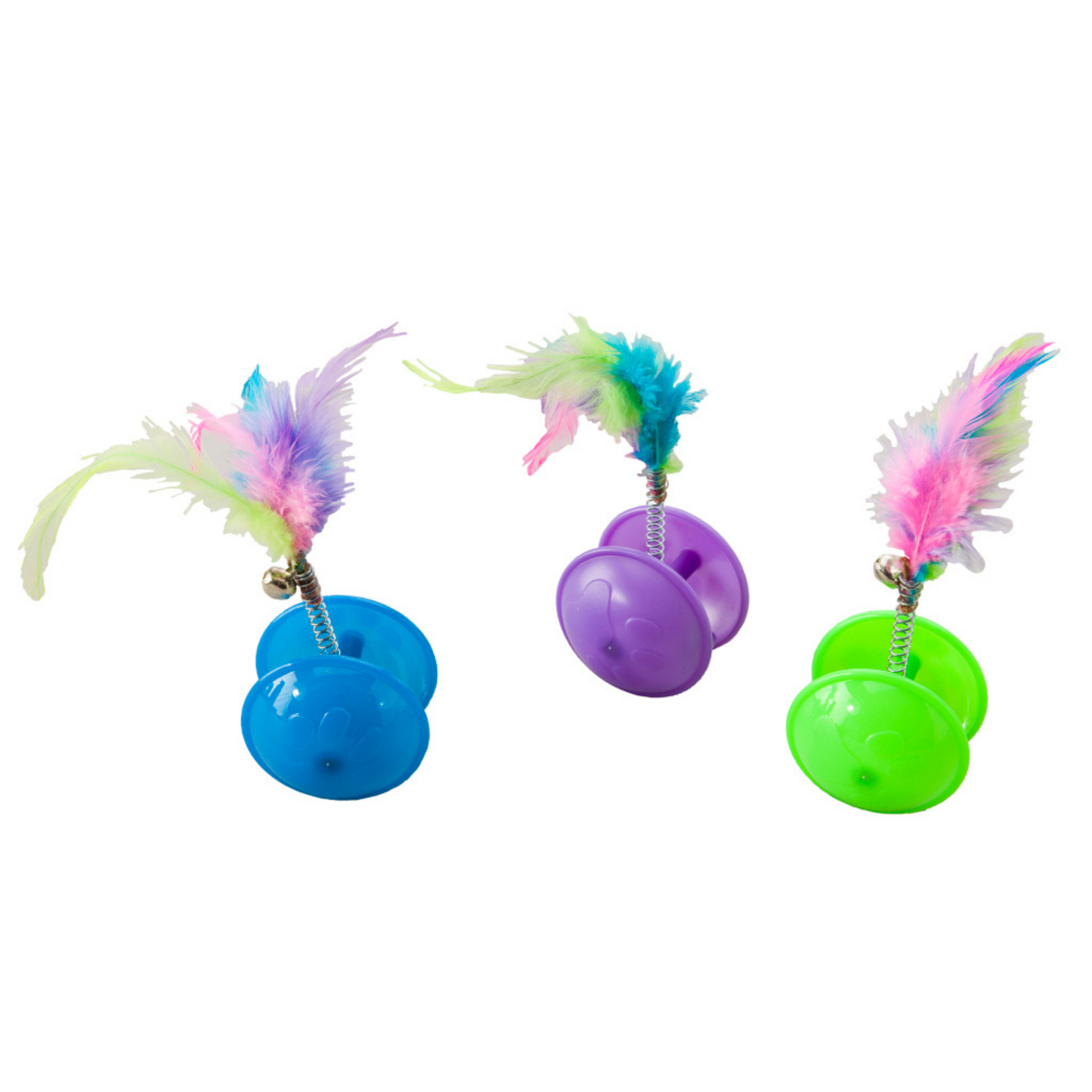 - Bright, colorful plastic cat toys