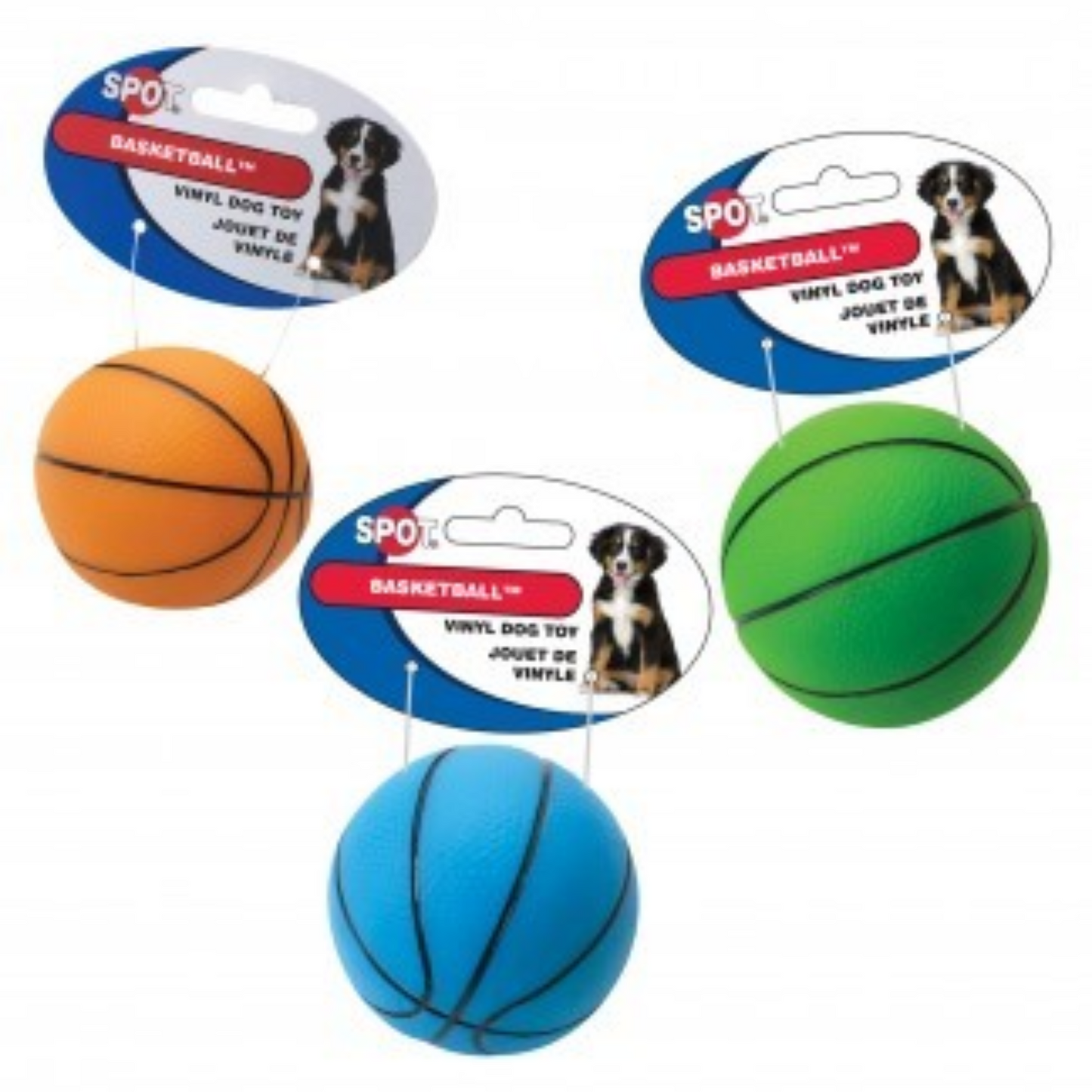 Spot Vinyl Basketball Toy is a durable and fun vinyl dog toy. Squeaker inside the basketball for added fun. Use this perfect size ball for fetch and interactive play with your puppy or dog.
