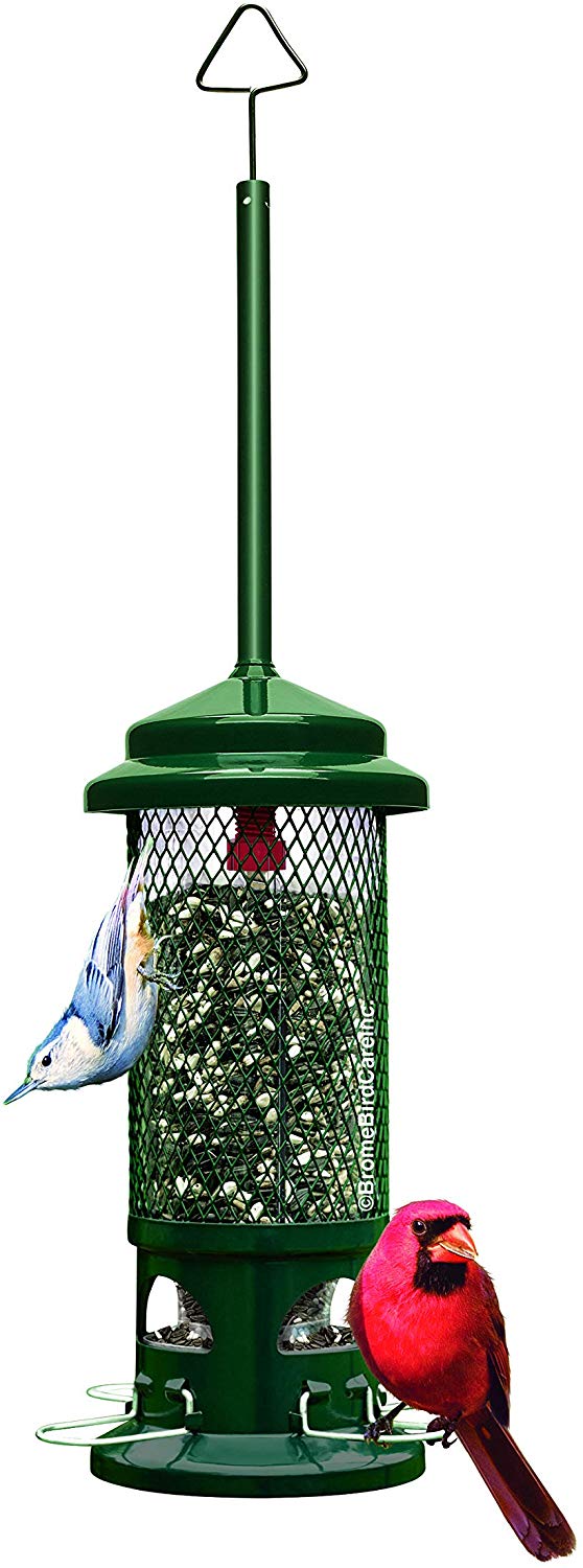 Equipped with patented Squirrel Buster technology, this Brome 1057 Squirrel Buster Standard bird feeder offers an innovative design that attracts birds while keeping squirrels at bay. The bird feeder holds up to 3/4 quarts of bird seed, whether it's Black Oil sunflower seed (a good all-round birdseed) or other seed blends specific to your area.
