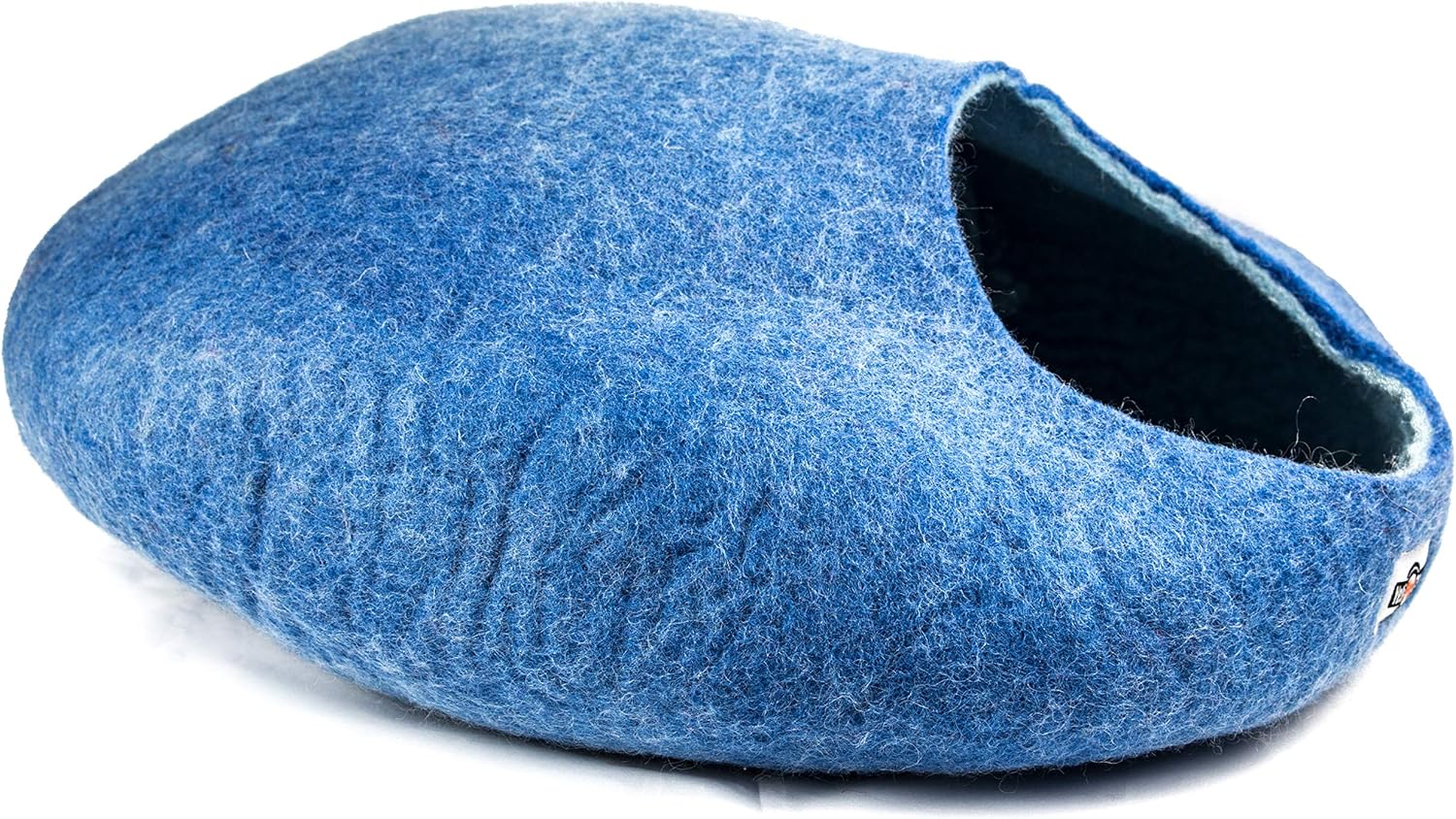 Yeti Pet Cave Pet Bed for Cats and Small Dogs, 100% New Zealand Wool, Blue