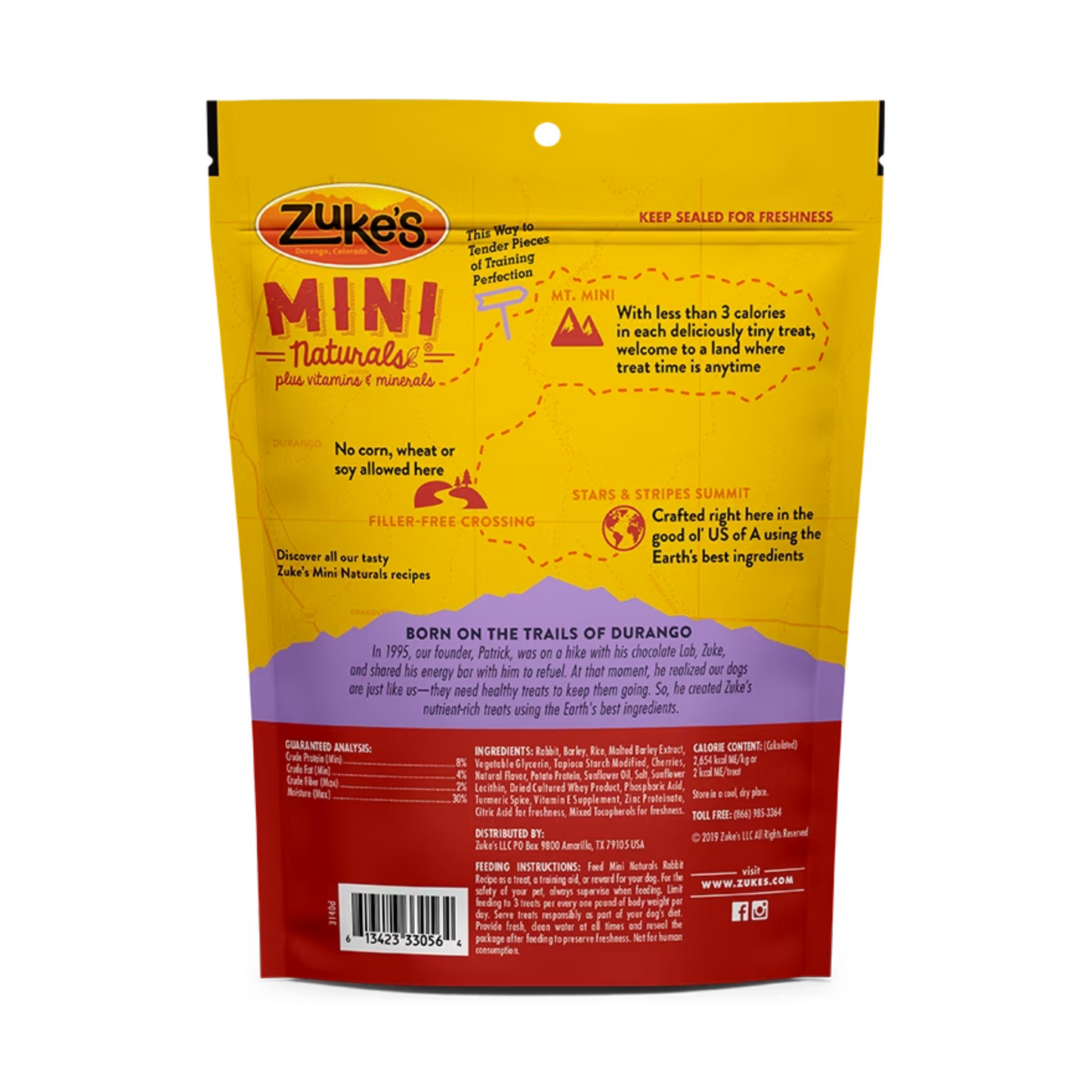 Zukes Mini Naturals are the bite-sized, low-calorie, healthy morsels your dog craves! These tasty, high protein natural treats are great for frequent rewards and perfect for training. Best of all, they're fortified with vitamins and minerals and made with real rabbit for your dogs delight.